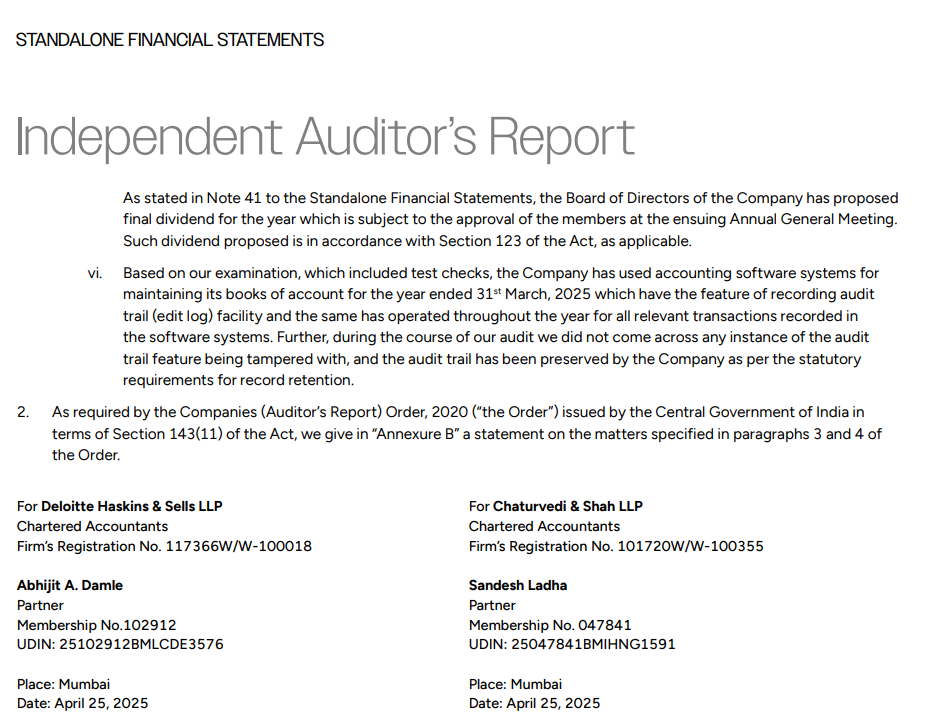 Illustration of Reporting (Standalone Financial Statments – Reliance Industries Limited)
